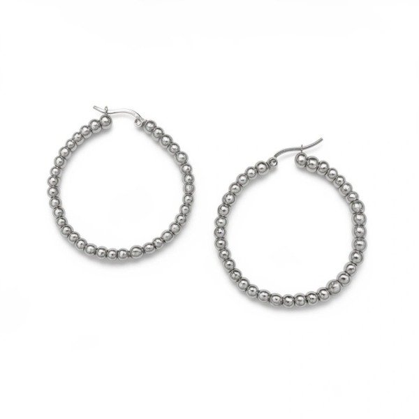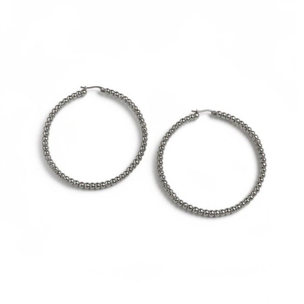 Argollas de acero quirúrgico con bolitas y cierre italiano. Vienen en tres medidas diferentes 40, 45 y 65mm.