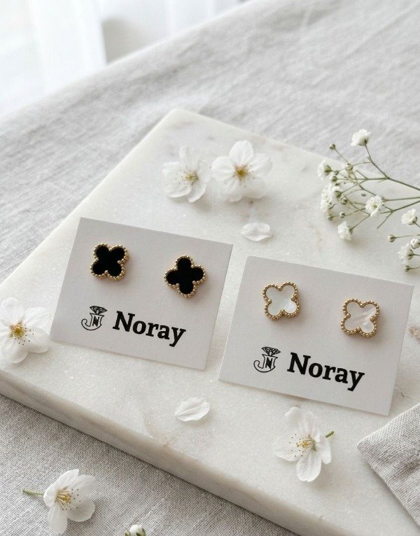 Aros acero dorado trebol.