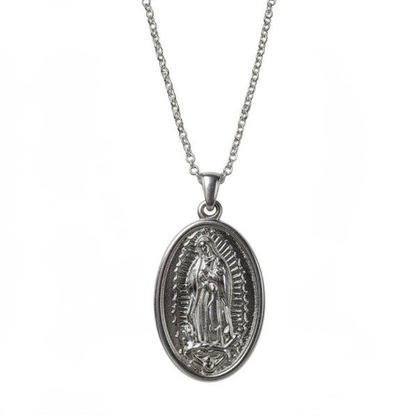 Collar forcet con medalla ovalada de la virgen de guadalupe. Diámetro de alto con gancho 5cms.