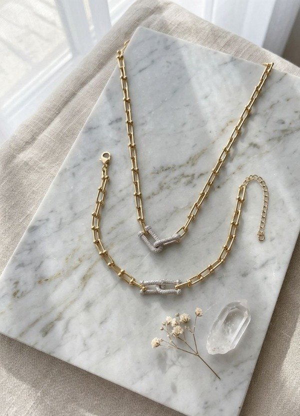 Conjuntos tiff acero dorado 45cm con alargue 5cm.