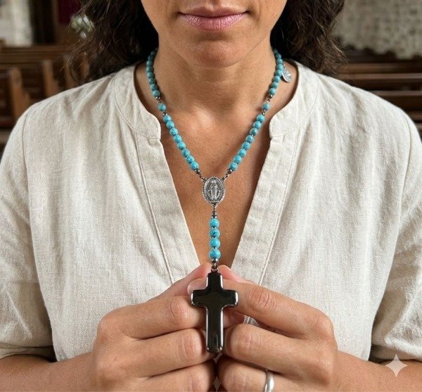 Rosario turquesa acero quirurgico,con cruz lisa.