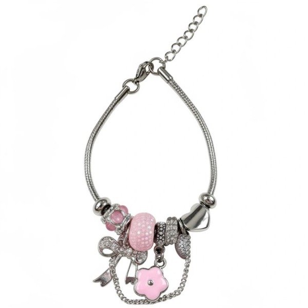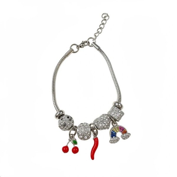 Pulsera de acero con charms de 17.5cms de largo con opción de alargue 3cms más.