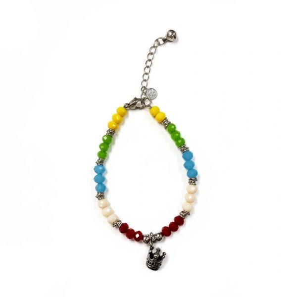 Pulsera con cristales y charm de corona en acero quirúrgico.