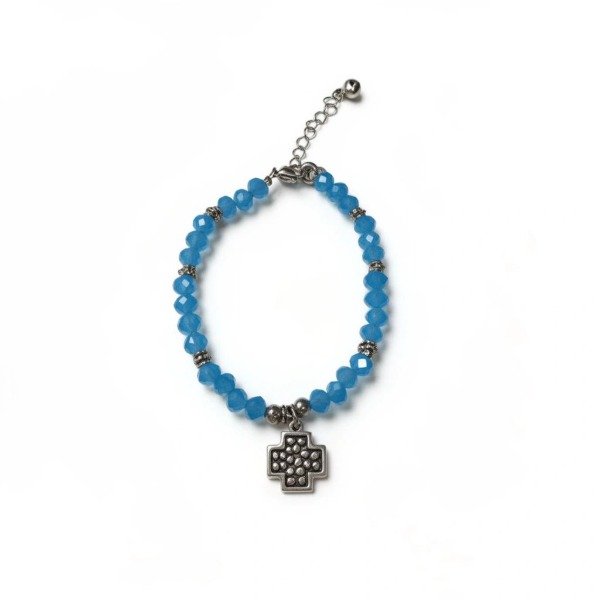 Pulsera cristales con char,m de cruz de acero quirúrgico.