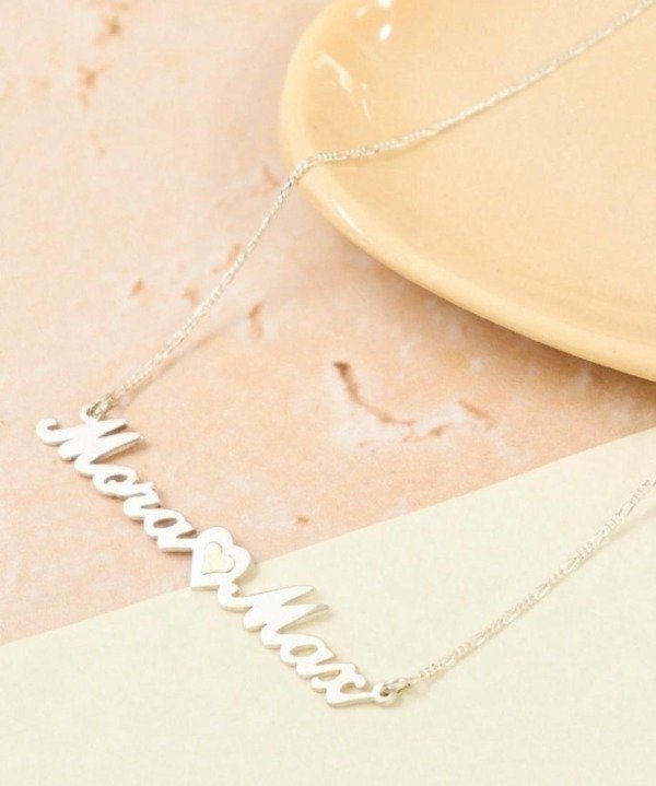 Collar doble nombre cursiva corazon duble en plata 925.