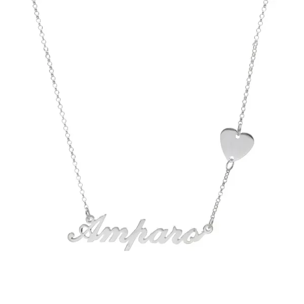 Collar cursiva con cadena rolo y accesorio corazon en plata 925.