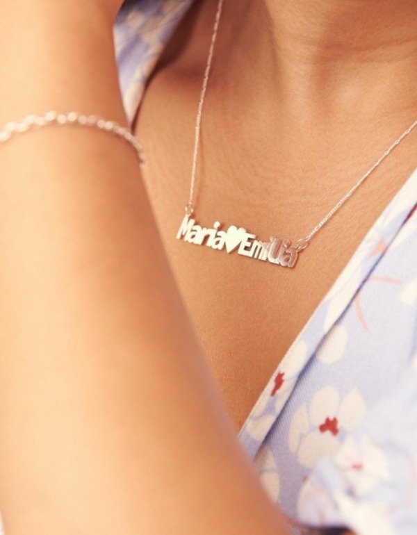 Collar imprenta corazon doble nombre en plata 925.