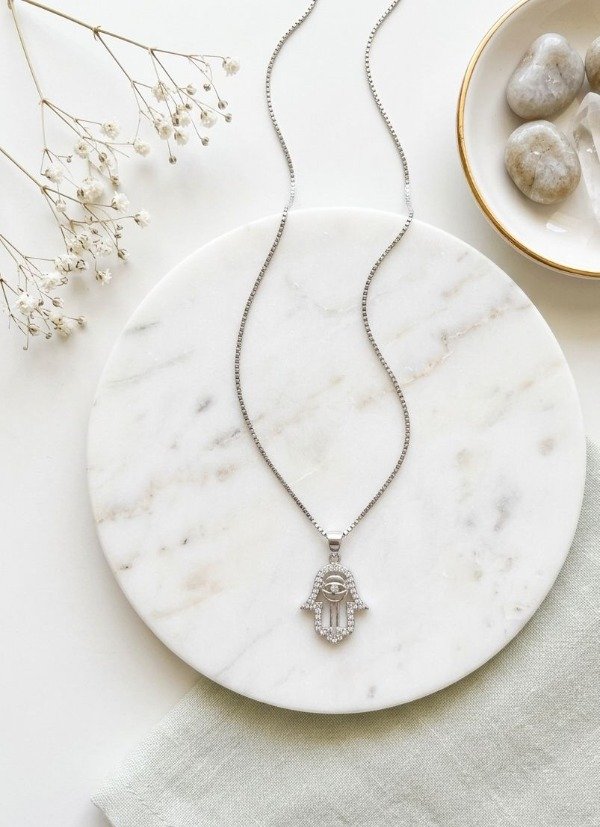 Conjunto mano de fatima con cubic en plata 925.
